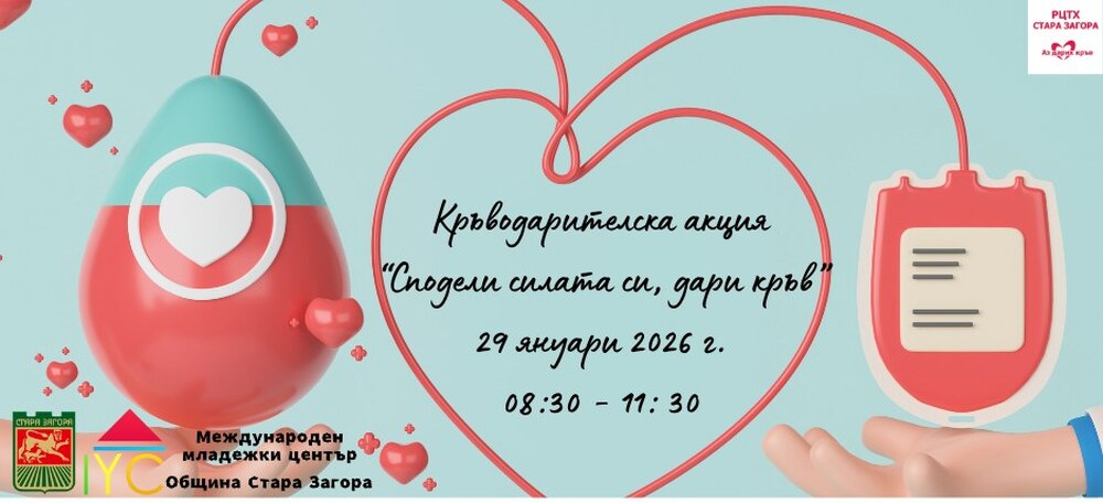 Кръводарителска акция под надслов „Сподели силата си, дари кръв“ се провежда днес в Стара Загора по инициатива на Международния младежки център (ММЦ). Това съобщават организаторите на официалната си страница във Facebook.