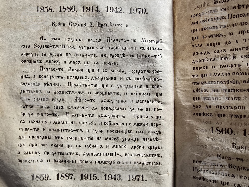 Любопитен поглед към бъдещето разкрива „Вечен календар“ от 1860 г., съхраняван във фонда на Регионалния исторически музей във Видин. Старинното издание, известно още като „Месецослов“ или „Календар вечний“, съдържа предсказания за природни и обществени сътресения, които и днес предизвикват интерес. За съдържанието му пред БТА разказа етнографът Тихомир Асенов.